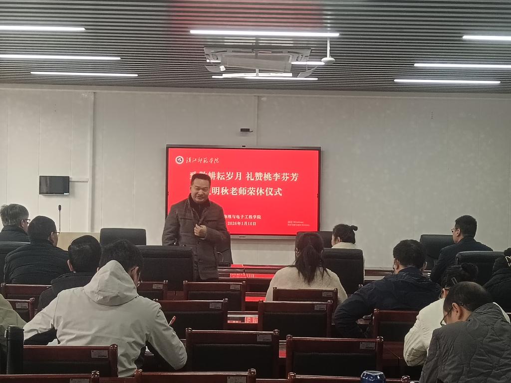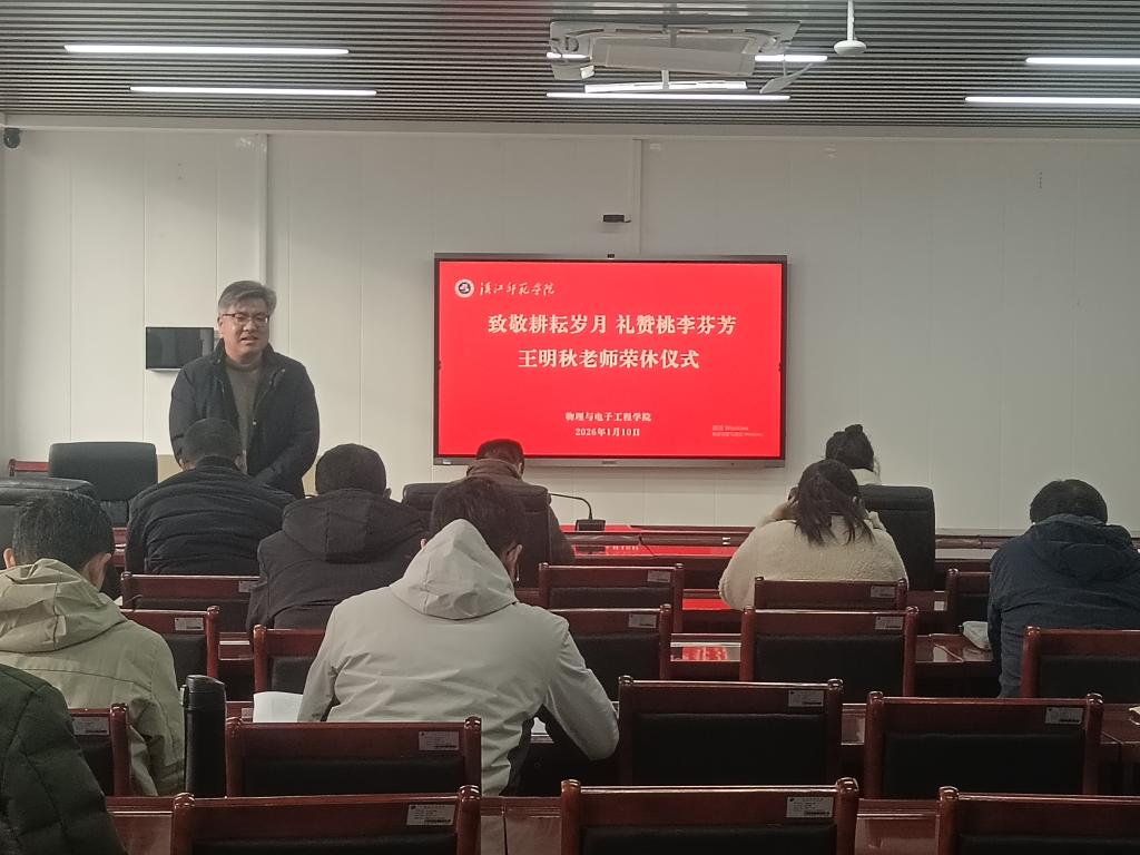 致敬耕耘岁月,礼赞桃李芬芳。1月10日上午,物理与电子工程学院在崇文楼B809为王明秋老师举办温情庄重的荣休仪式。学院领导班子及全体教职工齐聚一堂,共同见证这一温馨时刻。